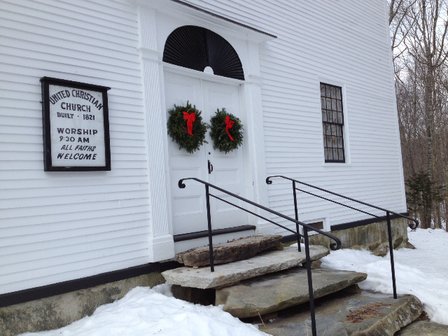 Coming to church on a fine summer's dayOur historic meetinghouse was built in 1820-1821 by Joshua Lamb, who sold subscriptions for family pews. Some of Lamb's descendants still worship here. The building's history is integrated with that of the town, since for many decades, it functioned as both church and public meeting house. Over the past centuries, the church has been associated with several different faith traditions, and often shared circuit preachers with other churches.